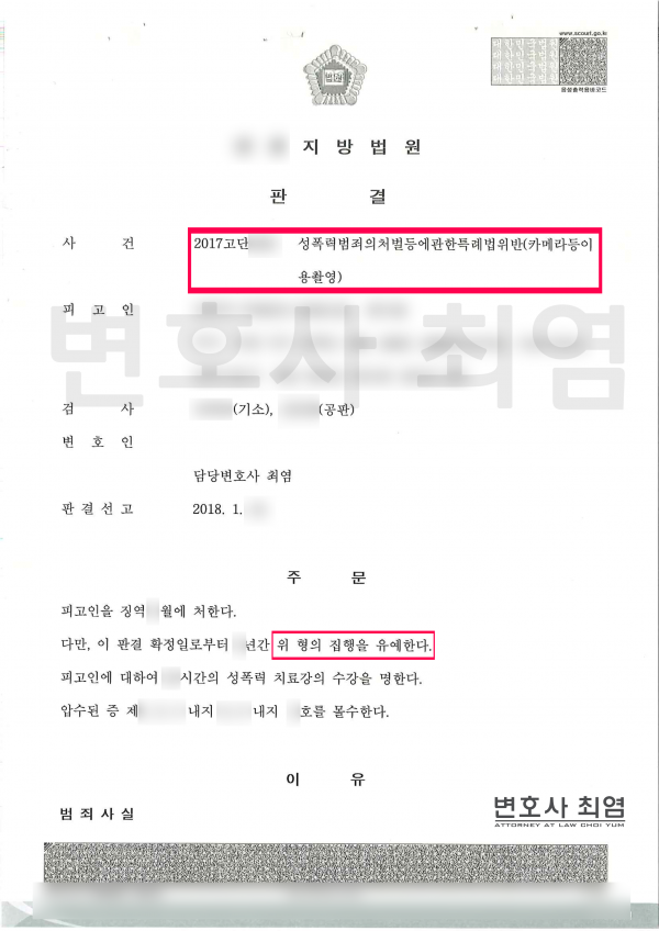 성폭법(카메라등이용촬영죄) > 성공사례