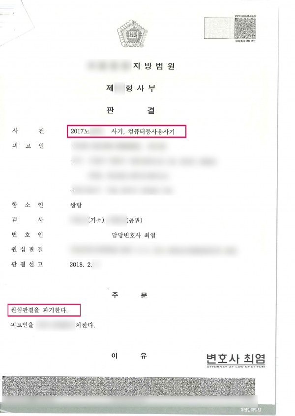 이에 재판부는 일부 공제한 피해금 전액 등 기타 양형의 조건들을 함께 고려하였을 때 원심이 선고한 형은 너무 무거워서 부당하므로 형을 다시 정할 필요가 있다 하여 원심파기 결정을 하였습니다.
