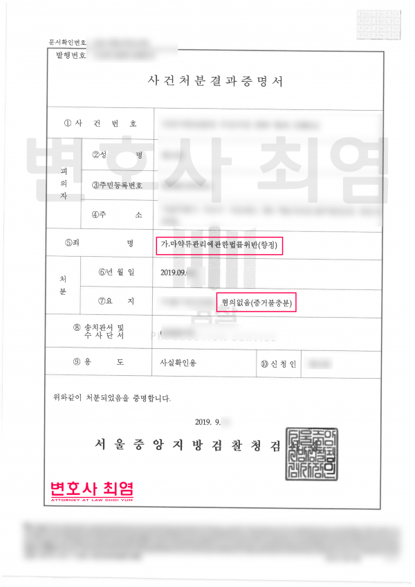 의뢰인은 마약류를 광고하고 소지한 죄로 경찰서에서 조사 연락을 받아 사무실에 방문하였습니다.