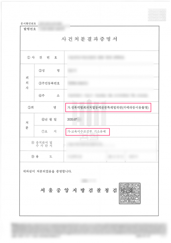 이에 검찰은 피의자가 촬영한 부위, 피해자가 식별되지 않을 정도의 촬영물 및 잘못을 인정하며 반성하고 있는점, 범행도구인 휴대전화가 압수되고 영상이 유포되지 아니한 점 등 기타 변호인의 의견을 반영하여 기소유예 결정을 하였습니다.