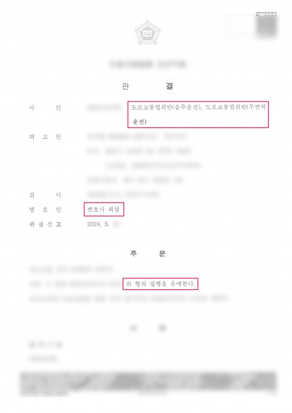 다행히 법원은 이러한 변호인의 주장과 의뢰인의 진심어린 반성에 의뢰인에게 집행유예를 선고하였습니다.