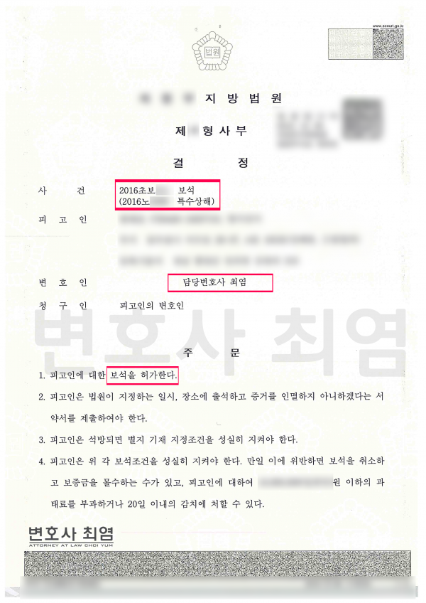 구속영장기각 및 보석