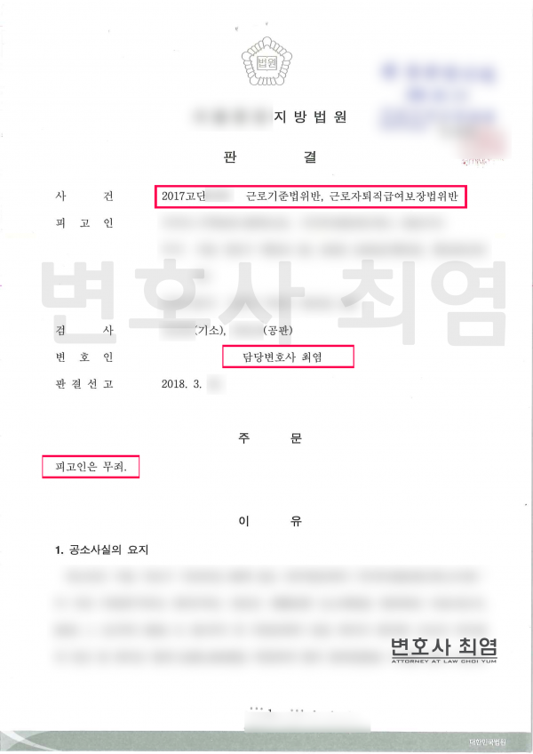피고인은 이 사건 사업장의 명의상 대표이사일 뿐 실제로 운영한 사실이 없기 때문에 근로자들에 대하여 근로기준법이나 근로자퇴직급여보장법상 임금 및 퇴직금 지급의무를 부담하지 않으며 실질적인 운영자는 A와 B라고 주장하였습니다.