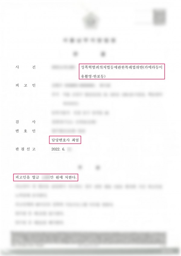 성폭력범죄의처벌등에관한특례법위반(카메라등이용촬영.반포등)벌금/ 카메라촬영죄벌금형
