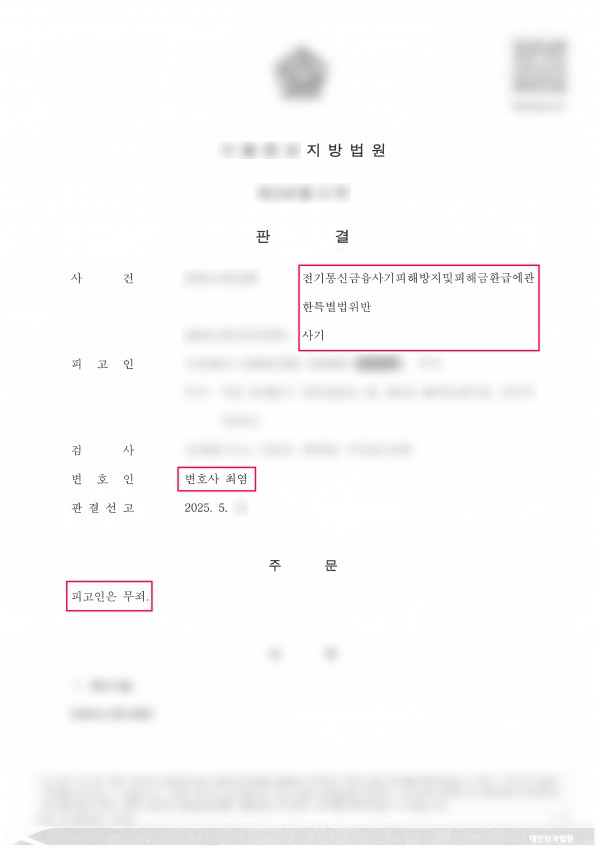 보이스피싱 무죄/전기통신금융사기피해방지및피해금환급에관한특별법위반 무죄