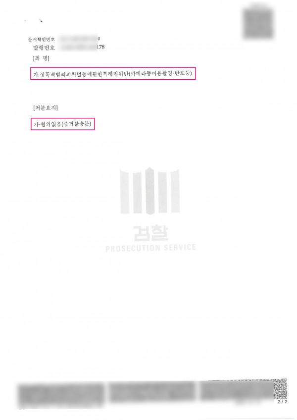 성폭법(카메라등이용촬영.반포등) 무혐의