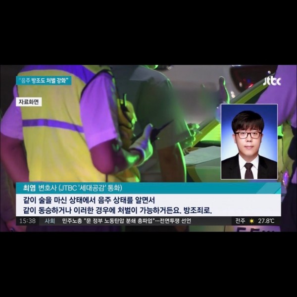 [최염/변호사 (JTBC '세대공감' 통화) : 같이 술을 마신 상태에서 음주 상태를 알면서 같이 동승하거나 이러한 경우에 처벌이 가능하거든요. 방조죄로. 경우에 따라서는 같은 술자리에 있었는데 어쨌든 직장 상사거나 집으로 데려다줘야 된다거나 뭐 이런 상태에서 같이 술을 먹고 탑승한 경우에 같이 처벌되는 경우가 있는 것 같아요. 수사기관에서 일단은 음주 수치 관련돼서 운전한 사람만 처벌하는 경향이 있고 같이 동승한 사람에 대해서는 소환해서 조사를 한다거나 이런 별도의 절차가 더 없는 경우가 많거든요. 아직까지 수사기관이 확립된 게 없는 것 같아요. 제가 봤을 땐.]