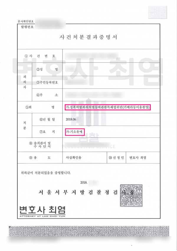 검찰 또한 사건 당시의 정황, 초범인 점, 진지하게 반성하고 있으며 촬영 수위가 높지 않은점 등을 토대로 변호인이 주장한 사건의 경위 및 정상참작사항들을 면밀히 검토하여 기소유예 처분을 하였습니다.