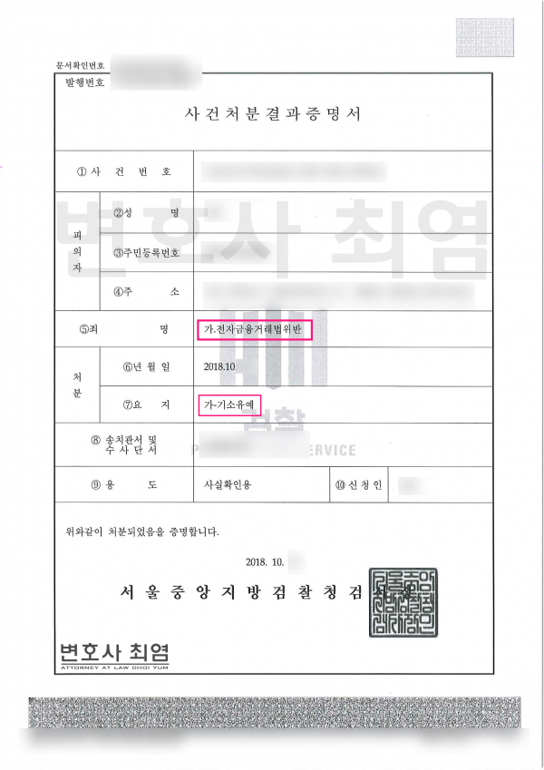 이러한 변호인의 조력의 결과 피해금원이 적지 않으나 본건에 이르게 된 경위를 보았을 때 성명불상자로부터 체크카드를 보내주면 입출금을 반복하여 대출 한도를 높여 주겠다라는 취지의 제의를 받고 교부한 것으로 실제로 별다른 이득을 취하지 아니한 점 등을 정상에 참작하여 기소유예 처분 결정을 하였습니다.