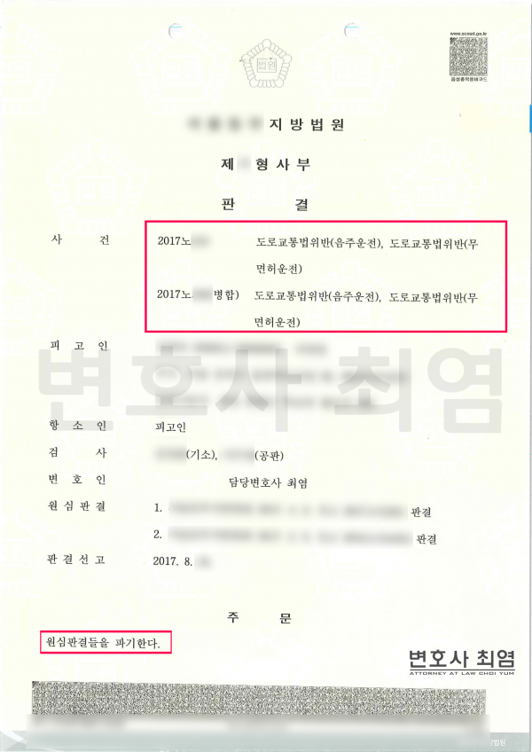 도로교통법위반(음주,무면허운전/동종전과2회)