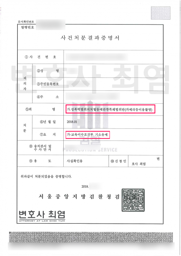 같은 범죄로 처벌받은 전력은 있으나, 범행을 인정하고 반성하며 재범하지 않을 것을 다짐하고 있는 점, 피해자가 처벌을 적극적으로 원하지 아니하고 있으며 원만하게 합의가 된 점 등을 참작하여 성폭력재범방지교육 프로그램 이수를 조건으로 기소유예 처분을 하였습니다.