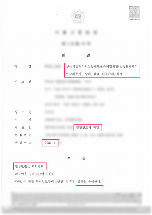 성폭법위반(친족관계에의한강제추행),상해,감금,재물손괴,폭행 집행유예/구속피고인석방