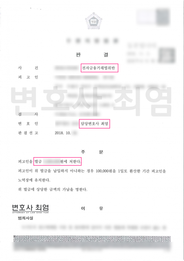 전자금융거래법위반 - 2년간 양도 > 성공사례