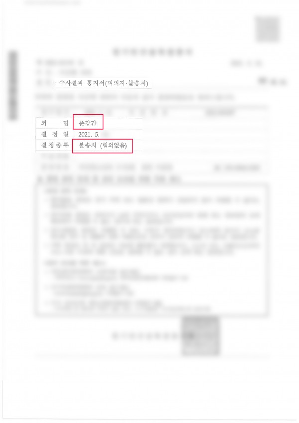 이에 수사기관 역시 피해자 진술만으로 사실을 인정하기 부족하며 강간에 대한 혐의를 인정할 증거가 없기에 위 사건에 대하여 증거불충분하여 혐의없음(불송치결정) 을 결정하였습니다.